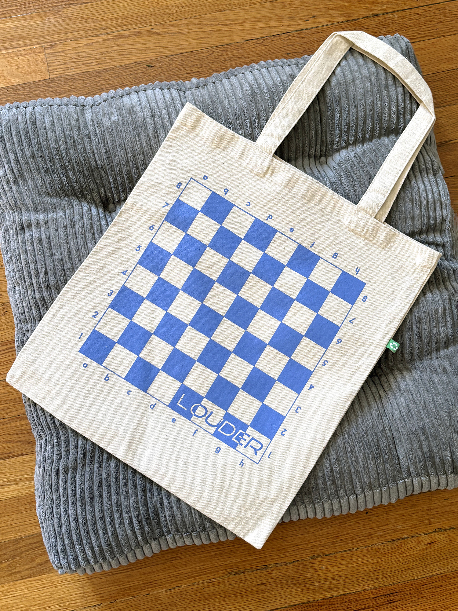 A sturdy everyday tote made from eco-friendly materials, designed to be used and reused. Inspired by chess — a game of patience, strategy, and care — this bag is built to double as a chess board and carry your chess pieces, groceries, or art supplies.